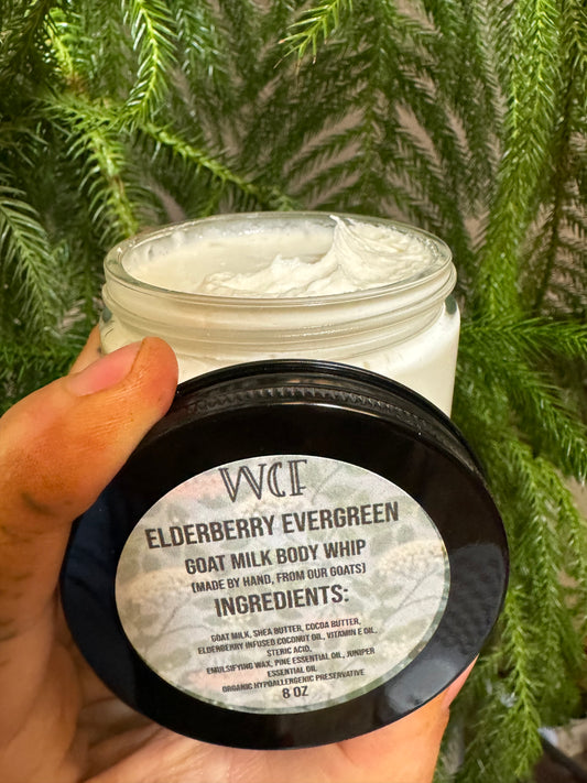 Elderberry Evergreen Goat Milk Whip (8oz glass jar) *now Elderflower Evergreen Goat Milk Whip*