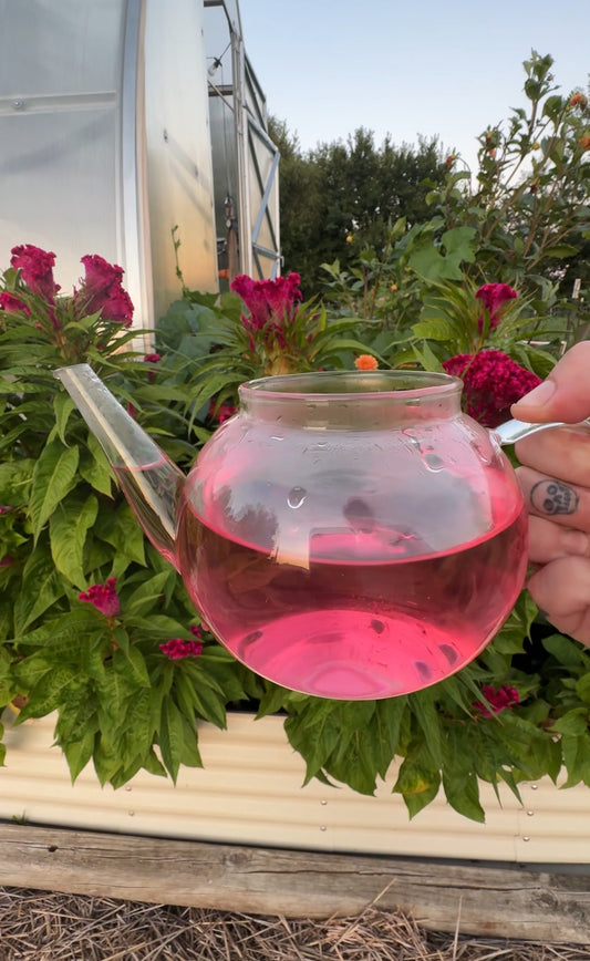 Farm-Raised & Freeze-Dried Cockscomb Tea (Celosia in 6oz pink glass mason jar)