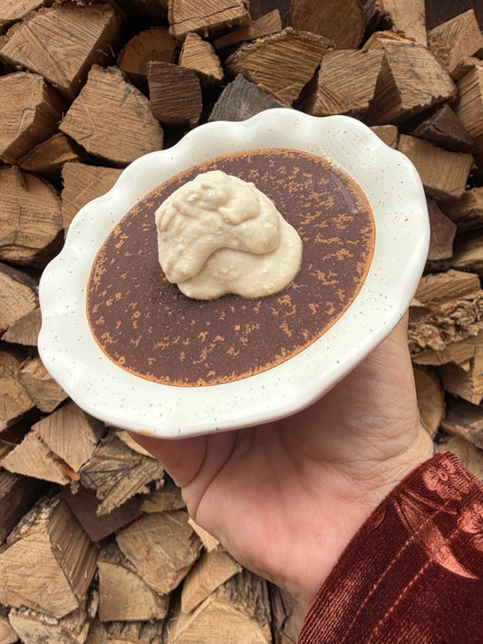 Pumpkin Pie Dish Soap + Natural Palm Brush Set (Pumpkin Cheesecake Scent w/Reusable Stoneware Pie Dish)