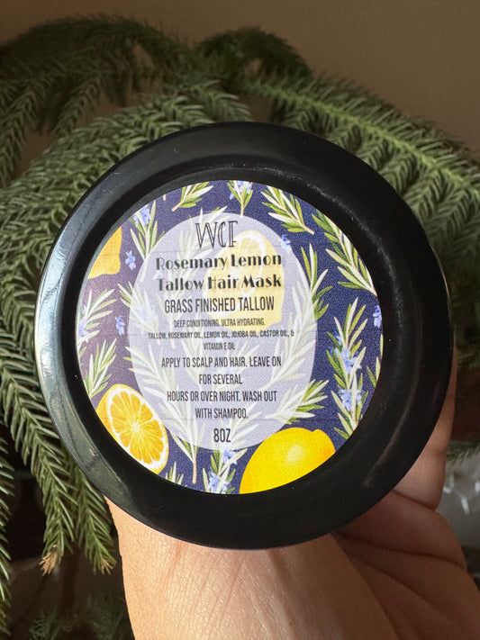 Rosemary Lemon Tallow Hair Mask (8oz Glass Jar)
