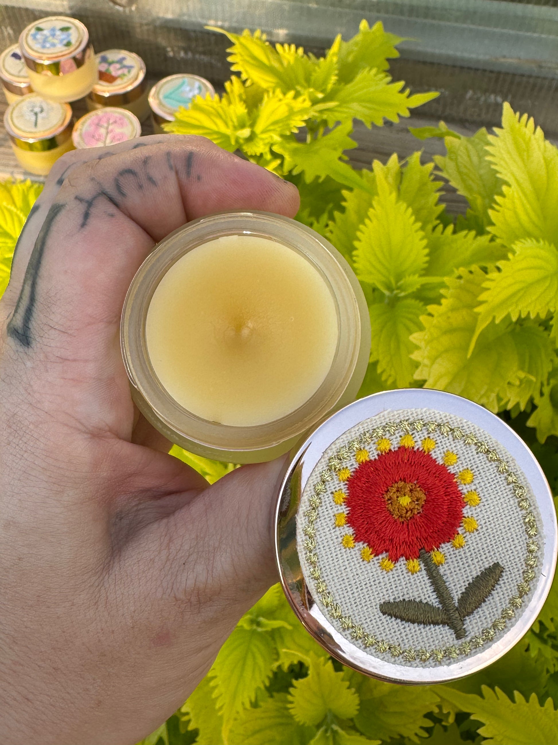 *note! Each balm comes with its own unique wildflower embroidered lid chosen at random!